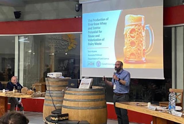 Successivamente si è avuto l'attesissimo intervento del prof. Sam Alcaine, della Cornell University, che ha presentato i risultati sull'utilizzo di siero e scotta per l'ottenimento di 2 birre artigianali denominate Scotta (stile Gose dal residuo della ricotta) e Beelk (stile Imperial Stout da siero deproteinizzato), attraverso un protocollo sperimentale messo a punto con la collaborazione del CoRFiLaC e del birrificio Yblon. Il prof. Alcaine ha presentato anche ulteriori utilizzi di questo "scarto" in bevande alternative.
