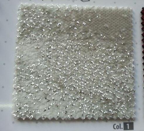 La guida é stata cucita in positivo e negativo per creare gradevoli gioco di luci ed ombre ed é laminato con fili di paillette in tono di colore che garantisce sfavillanti luccichii.