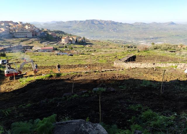 Prima del trapianto sono stati effettuati lavori di sistemazione delle terrazze con livellamento delle stesse e concimazione di fondo, al fine di rendere più fertile il terreno. La parcellizzazione del campo consentirà di mettere a confronto le piante inoculate con i "testimoni" del confronto. I lavori proseguiranno a pieno ritmo per la realizzazione dell'impianto di micro-irrigazione.
