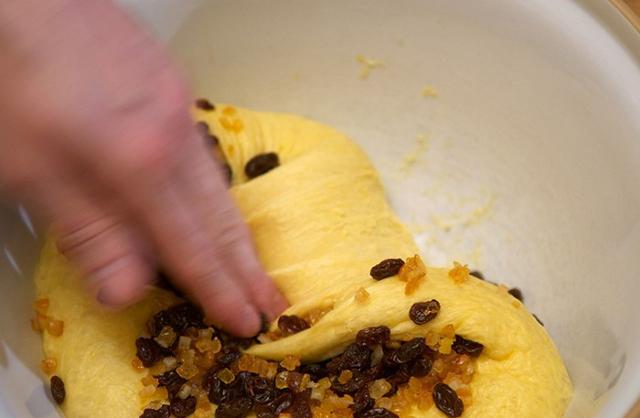 A parte, mettete l’uvetta a bagno nel marsala, facendola rinvenire e lavate i canditi. Asciugate il tutto e unitela all’impasto insieme alla scorza di limone grattugiata e l’essenza di vaniglia. Amalgamate tutto e mettete di nuovo a lievitare finché il composto non raddoppia ancora le sue dimensioni. Ci vorranno circa 2 o 3 ore.