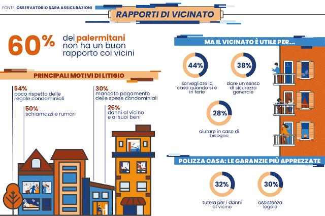 Senza dimenticare i danni e i piccoli inconvenienti (26%) al vicino derivanti dalla gestione quotidiana della propria abitazione o provocati magari durante lavori di ristrutturazione. E come se non bastasse, circa un palermitano su dieci (14%) penserebbe persino di cambiare casa per il rapporto difficile coi vicini.
