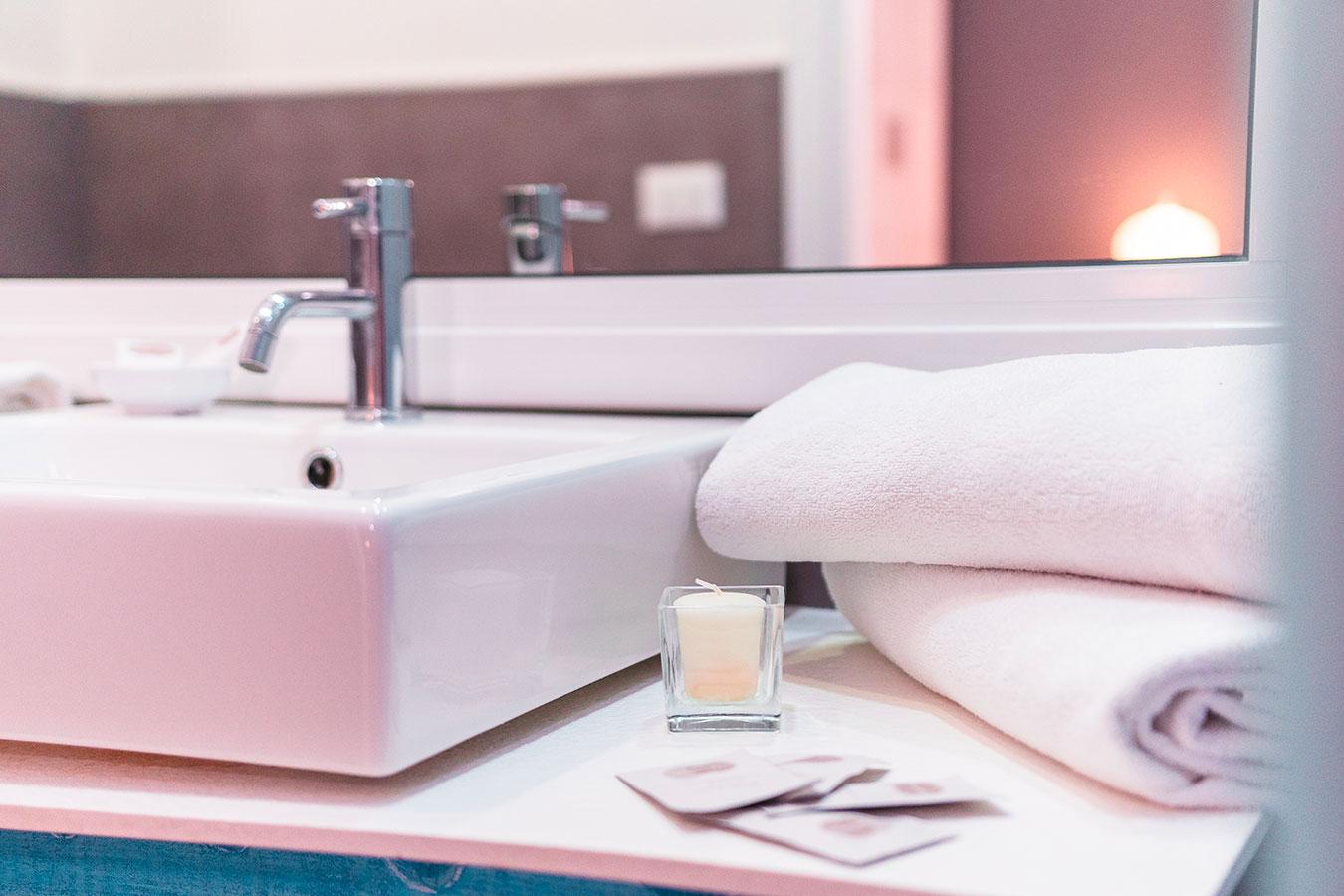La stanza Rinaldo è una quadrupla dotata di tutti i comfort. Dispone al suo interno di un bagno grande con box doccia e cromoterapia, per garantire il massimo benessere e relax ai nostri ospiti.